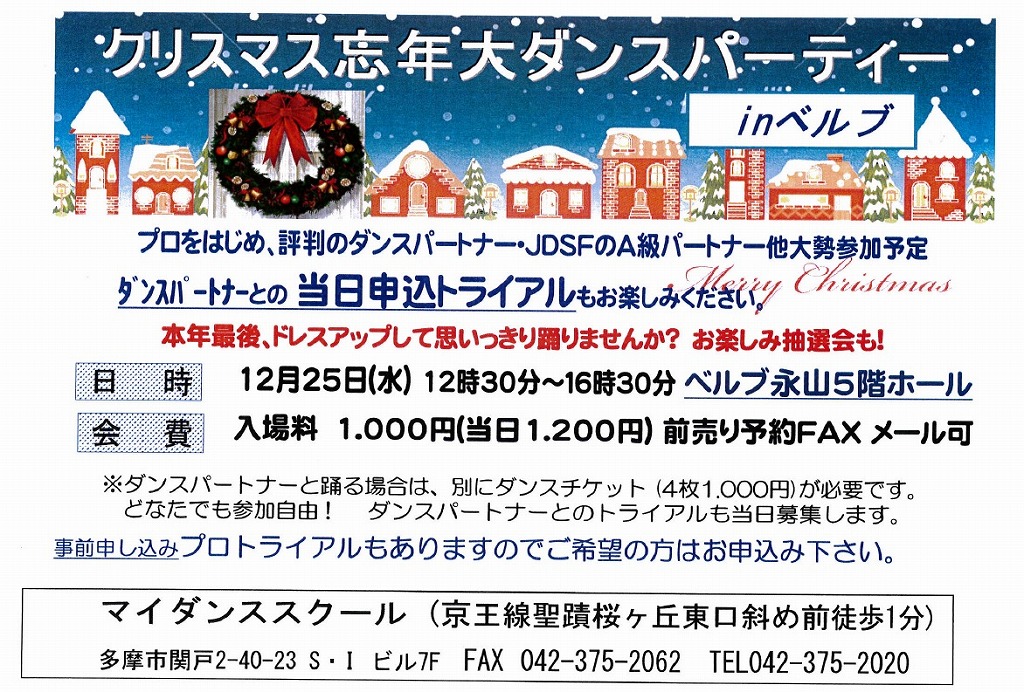 毎年恒例の大忘年パーティを今年もベルブ永山で行います。